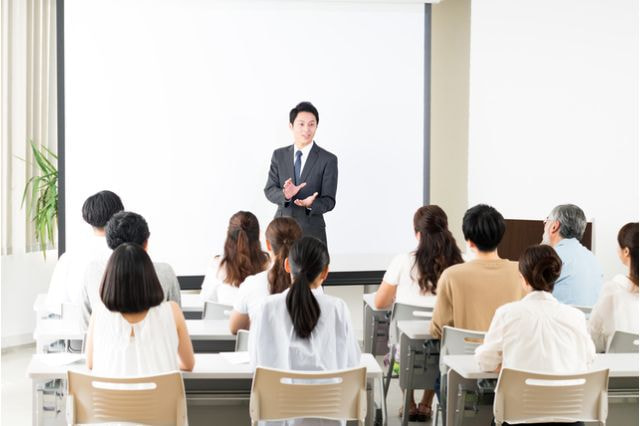 講師と受講生、ディスカッション形式など内容に応じた最適な方法で対面式、またはzoomでのオンライン形式など、状況に応じた形式で講座を開催しています。